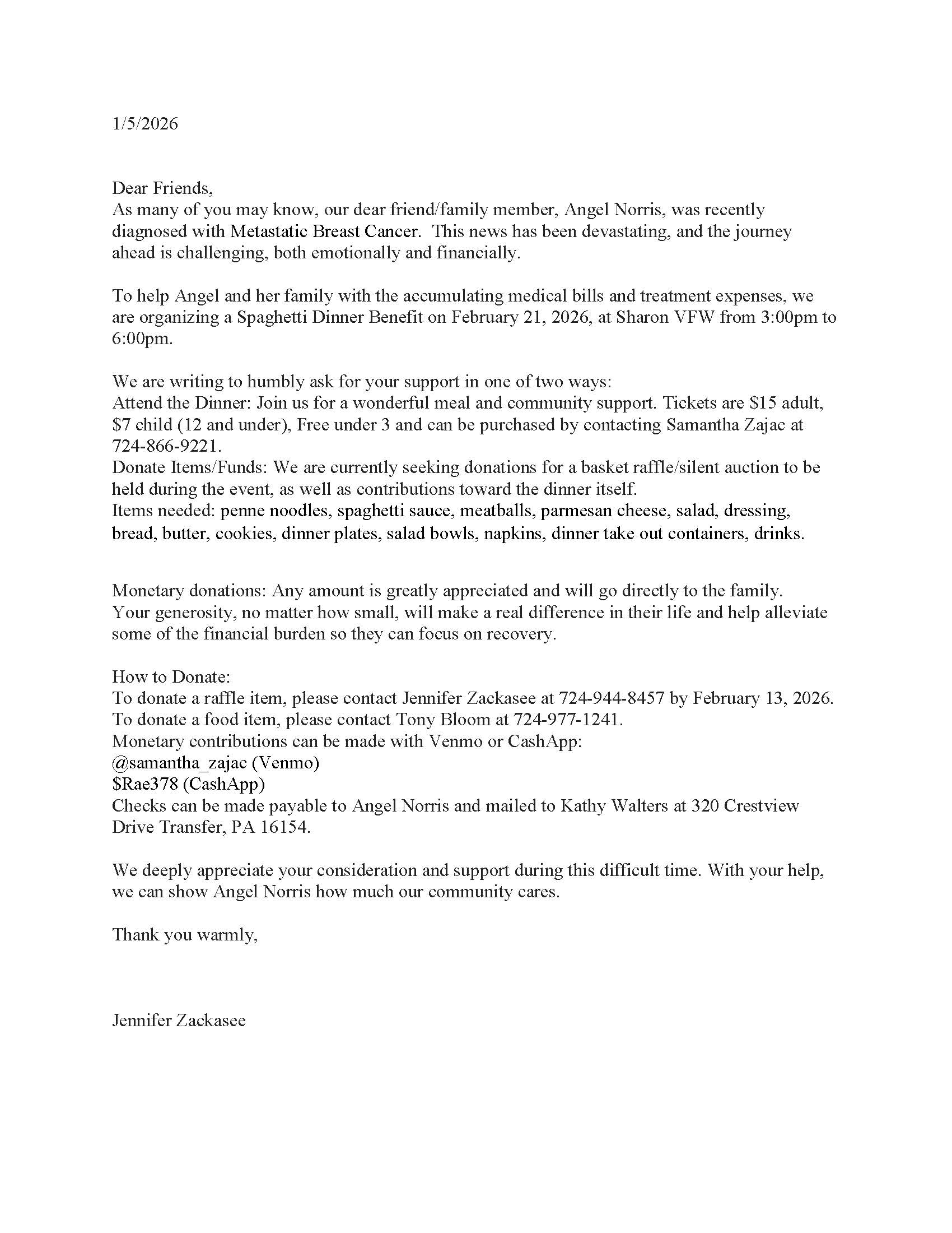Support Angel Spaghetti Dinner
